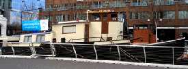 London's floating church, moored in West India Dock opposite the Docklands Museum. This could be very convenient but a little hazardous church for baptisms. (See No. 33. on the MAP ) |