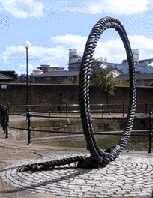 Hermitage Basin. This sculpture is made out of ships hawsers which have been shaped and stiffened to keep their form. The Sculptor's studio is in the old pump house at the other end of the Basin. (See No. 10. on Map) Sculptor: Wendy Ann Taylor. Date: 1997. See also by the same artist: "Docklands Enterprise", "Knowledge", "Timepiece" and "Voyage 2001" |
